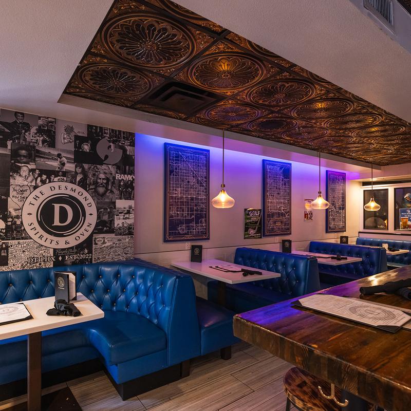 The Desmond is a European-inspired Gastropub that serves imported and local brews, craft cocktails, and a well-balanced menu. Our wood-fired oven is pushing out our artisan pizzas, paninis, and oven-roasted entrees, and has been getting great feedback.